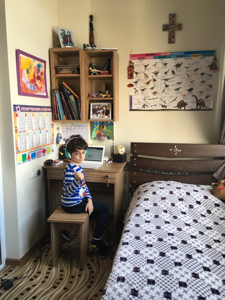 Моя комната не большая, но очень уютная.В моей комнате есть кровать, рабочий стол где делаю свои уроки, также есть полки для книг .У меня есть отдельный гардероб где лежат мои одежды. Кроме этого у меня есть универсальный комод где я храню свои игрушки,разные предметы для рисования и канцелярские принадлежности . Но самый мой любимый часть комнаты ,это огромная окно, из которого виден весь город,но особенно я люблю наблюдать из моего окна красивые салюты в праздничные дни.