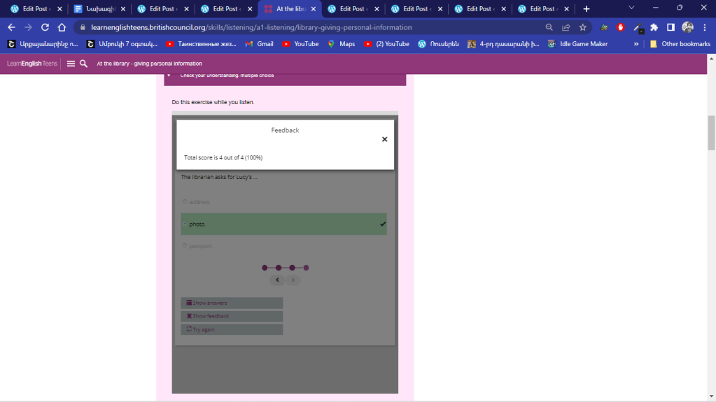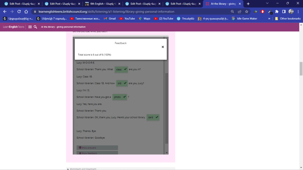 School librarian: Thank you … OK, thank you, Lucy. Here’s your school library card.