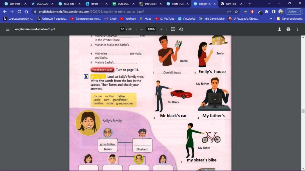 Posted in 6th English, Առաջադրանքներ Page.30 Posted on November 14, 2022December 21, 2022 by mark vardanyan Share this: Share on X (Opens in new window) X Share on Facebook (Opens in new window) Facebook Like Loading... Author: mark vardanyan View All Posts