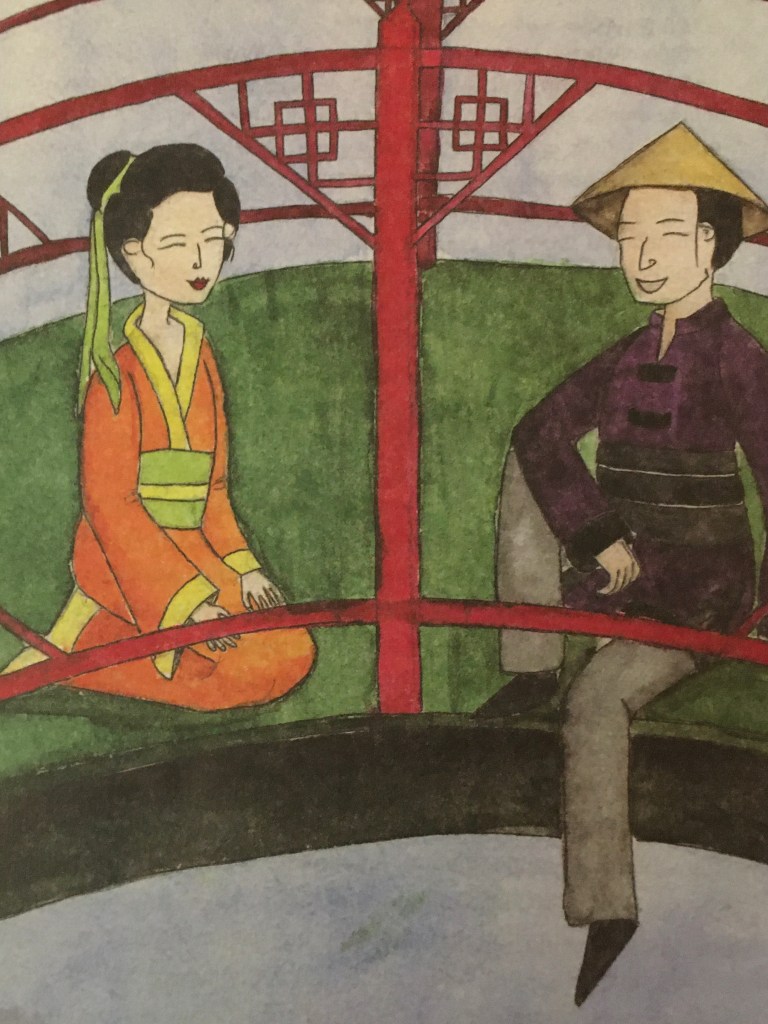 Դա վաղուց, շատ վաղուց է եղել: Ներքին Մոնղոլիայի դաշտերով մի գետ էր հոսում՝ լայն, ջրառատ ու ջինջ:Գետի արևմտյան ափում մի գեղեցիկ աղջիկ էր ապրում՝իր մոր հետ, իսկ արևելյան ափում ապրում էր մի հարուստ իշխան՝ իր սեփական ծառաներով և մերձավորներով :Իշխանի մոտ կար մի պատանի հովիվ նրան պարզապես անվանում էին հովիվ :Նա անուն չուներ որովհետև նրա ծնողները մահացել էին:Երբ նա վերադառնում էր տուն նկատեց մի գեղցիկ աղջիկ ,նա աղջկան ուշադրություն չէր դարձնում: Ահա և նրանք սիրահարվեցին: Չինական այս հեքիաթը գեղեցիկ սիրո ուժի մասին է:Իշխանը պատժեց նրանց և նարնք դարձան ժայռեր և միացան իրար: Չար իշխանը դառնոմ է սև կրիա ու կորչում անհետ,իսկ լեռները միշտ կանգուն են…